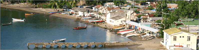 where fishing boats are pulled up next to wooden rum shops and bars. Outside these, local